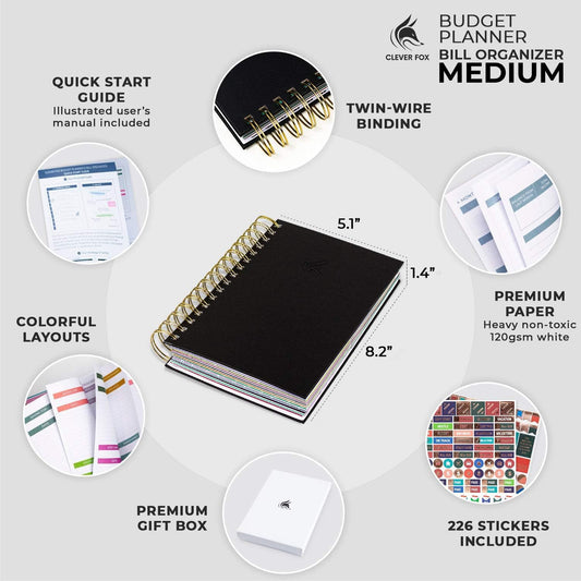Clever Fox Budget Planner & Monthly Bill Organizer With Pockets. Expense Tracker, Budgeting Journal & Financial Book. Medium, 5.1x8.2" (Black)