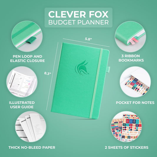 Clever Fox Budget Planner & Monthly Bill Organizer With Pockets. Expense Tracker, Budgeting Journal & Financial Book. Medium, 5.1x8.2" (Mint Green)