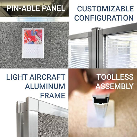 Versare Hush Panel Cubicle Kit | Workstation Partition Walls | Sound Dampening Cubicle Walls | Partitions for Desks