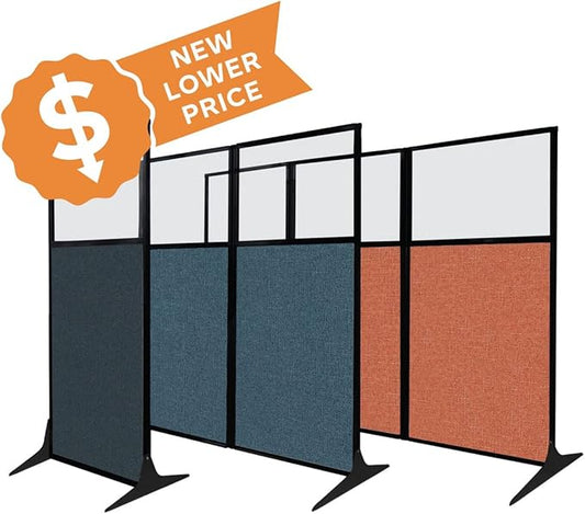 Versare Office Workstation Screen | Portable Wall Divider | Modern Cubicle | Freestanding Privacy Screen | Flexible Work Space | 3 Panels | 99" Wide x 70" Tall Marble Gray SoundSorb Panels With Window
