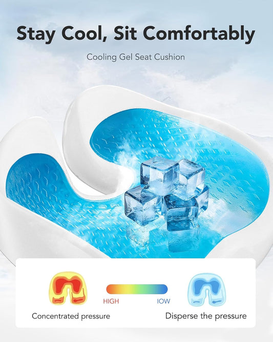 Seat Cushion, Gel Seat Cushion for Long Sitting– Back, Sciatica, Tailbone Pain Relief Pad, 19in Seat Pad for Car, Office Chair, Wheelchair, Soft Support for Long Trips