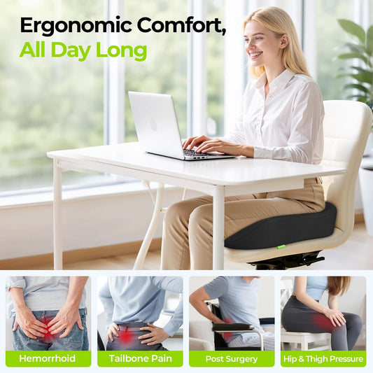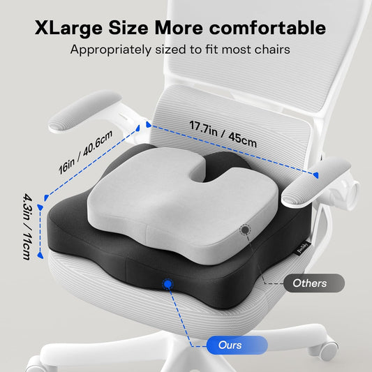 Seat Cushion for Tailbone Pain Relief X-Large,Ergonomic Office Chair Cushion for Butt Hip Lower Back & Sciatica Pain Relief Pillow,Pressure Relief Seat Cushion for Long Sitting,Office & Car (Black)