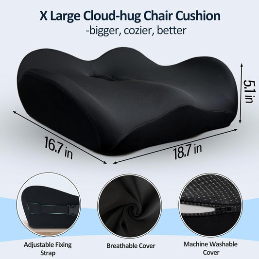 Benazcap X Large Memory Seat Cushion for Office Chair Ergonomic Cushions Butt Pillow for Pressure Relief Sciatica & Pain Relief Memory Foam for Long Sitting for Gaming Chair and Car Seat