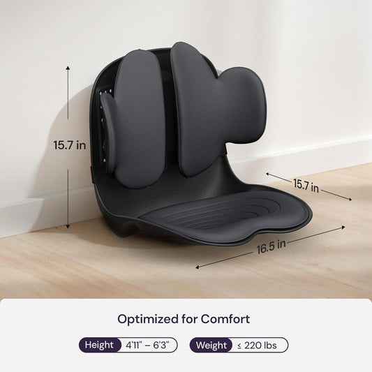 3D Lumbar Support Seat Cushion – Patented Spine Alignment Ergonomic Posture Corrector, Breathable Mesh & EVA Foam, Portable for Home, Office, Meditation, Gaming, Outdoor 16.5" W × 15.7" D