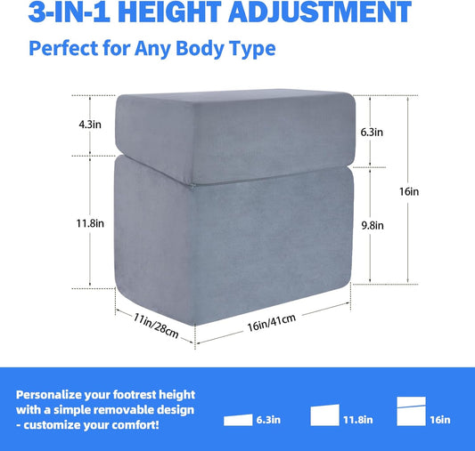 Adjustable Foot Rest for Under Desk - 3-in-1 Ergonomic Foot Stool with Zipper Connection, 6.3"/11.8"/16" Height Adjustable for Office, Home & Gaming (Gray)