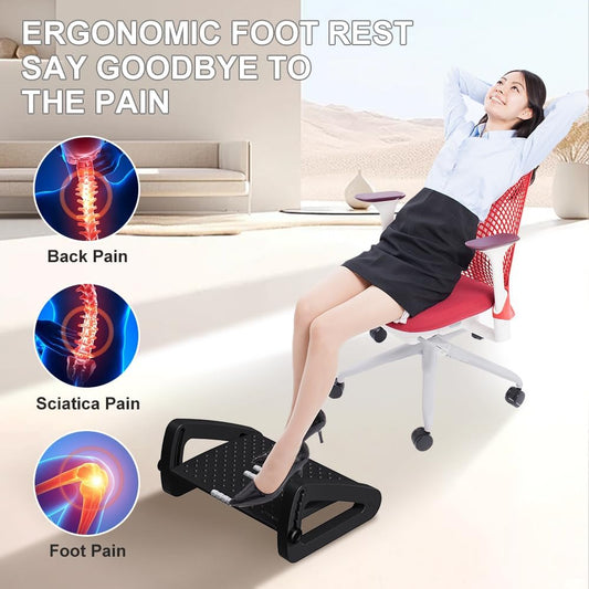 Foot Rest for Under Desk at Work - Six Heights Adjustable Under Desk Footrest - Ergonomic Foot Stools for Under Office Desks - Desks Foot Rest with Massage Rollers - Leg Rest for Chair (Black)