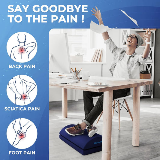 BlissTrends Foot Rest for Under Desk at Work-Versatile Foot Stool with Washable Cover-Comfortable Footrest with 2 Adjustable Heights for Car,Home and Office to Relieve Back,Lumbar,Knee Pain-Blue