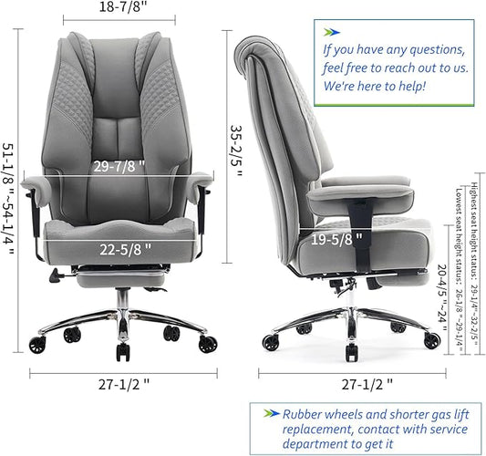Big and Tall Office Chair 400lbs Wide Seat, Leather High Back Executive Office Chair with Foot Rest, Ergonomic Chairs Lumbar Support for Lower Back Pain Relief (Mesh Light Grey)