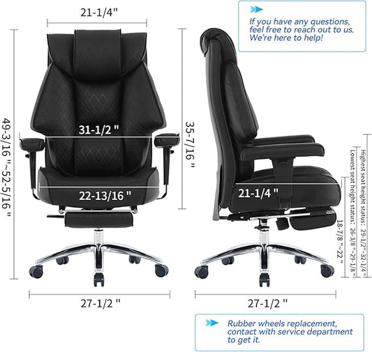 Big and Tall Office Chair with Footrest, PU Leather High Back Executive Office Chair 400lbs, Ergonomic Computer Chairs Lumbar Support for Heavy People (All Black)