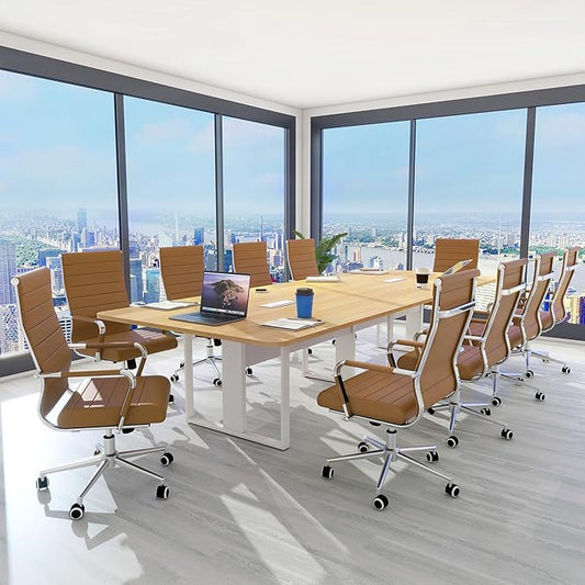 Home Office Chair Ribbed, Modern Leather Conference Waiting Room Chairs,Ergonomic Office Desk Chair, High Back Executive Computer Chair, Adjustable Swivel Chair with Arms (Brown)