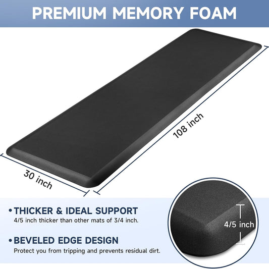 4/5 Inch Thick Kitchen Mats for Floor, StepRite Kitchen Rug for Standing Desk, Non-Slip, Thicker, Stain Resistant, Waterproof, Comfort Anti Fatigue Floor Mat for Home, Kitchen, Office - Black,108*30''