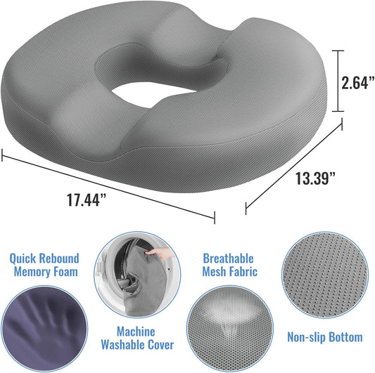 CloudBliss Donut Pillow Seat Cushion Chair Pad for Tailbone Pain Relief and Hemorrhoids, Memory Foam Seat Chair Cushion for Men and Women for Home & Office, (Light Grey)