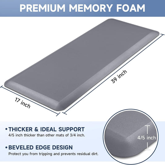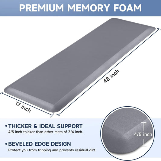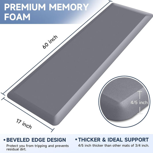 4/5 Inch Thick Kitchen Mat Anti Fatigue Mat Kitchen Rugs Kitchen Decor Non-Slip, Stain Resistant, Waterproof Kitchen Mats Desk Mat for Kitchen, Office, Workshop, Grey, 17'' x 60''