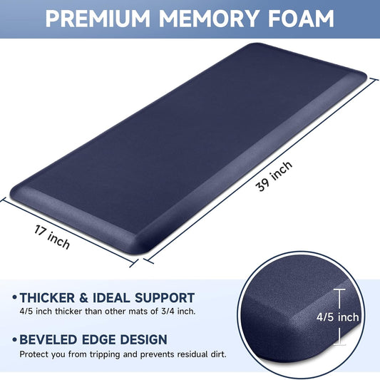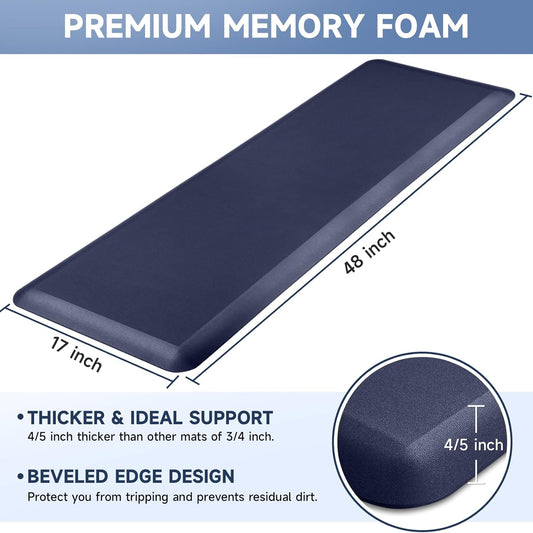 4/5 Inch Thick Kitchen Mat Anti Fatigue Mat Kitchen Rugs Kitchen Decor Non-Slip, Stain Resistant, Waterproof Kitchen Mats Desk Mat for Kitchen, Office, Workshop, Blue, 17'' x 60''