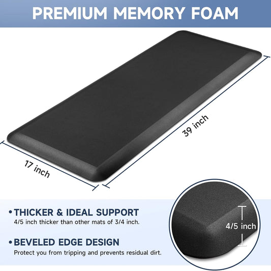 4/5 Inch Thick Kitchen Mats for Floor, StepRite Kitchen Rug for Standing Desk, Non-Slip, Thicker, Stain Resistant, Water Resistant, Comfort Anti Fatigue Floor Mat for Home, Kitchen, Office - Black