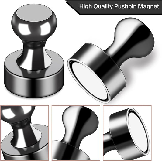 LOVIMAG Strong Refrigerator Magnets, 25 Pcs Black Push Pin Magnets, Perfect for Fridge, Office, Classroom