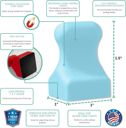 Glassboard Studio MiniBar Magnet - Strong Neodymium Rare Earth Magnets for Fridge, Whiteboard, Locker & Magnetic Glassboards - Crafting & Office Use - Strong Fridge Magnets (Seaside Teal Pawn, 2)