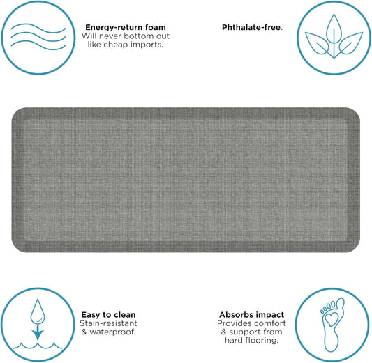 NewLife by GelPro Anti-Fatigue Designer Comfort Kitchen Floor Mat, 20"x48", Grasscloth Charcoal Stain Resistant Surface with 3/4" Thick Ergo-Foam Core for Health and Wellness