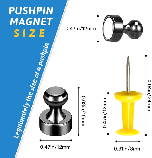 50Pack Fridge Magnets,Black Refrigerator Magnets,Small Magnets for Whiteboard,Strong Fridge Magnet Adults,Push Pin Magnet for Kitchen, Office, Classroom, Locker