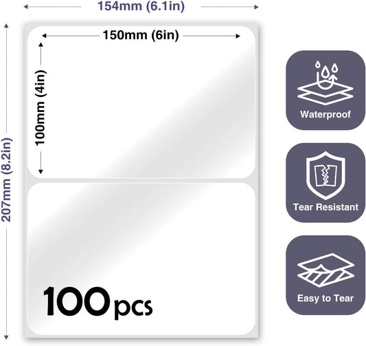 100Pcs Clear Large Labels for Storage Bins,6x4 Inch Removable Labels,Large Labels for Blank Box,Strong Adhesive Tear Resistant No Residue Blank Labels (Trasparent)