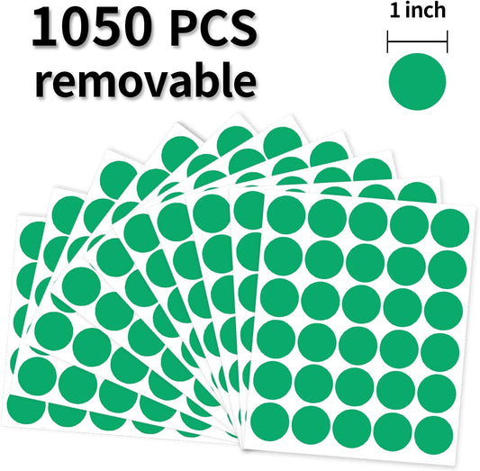 1 Inch Round Label Removable Color Code Dot Stickers,Garage Sale Sticker Price Tags Blank Yard Sale Circle Dot Stickers Writable Not Blurry (1050 Pack,Green)