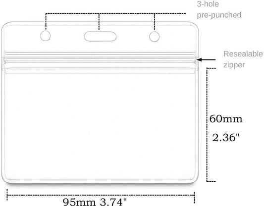 Bird Fiy 50 Pcs Waterproof Type Clear Plastic Horizontal Name Tag Badge Id Card and 50 Pcs Black Nylon Lanyard
