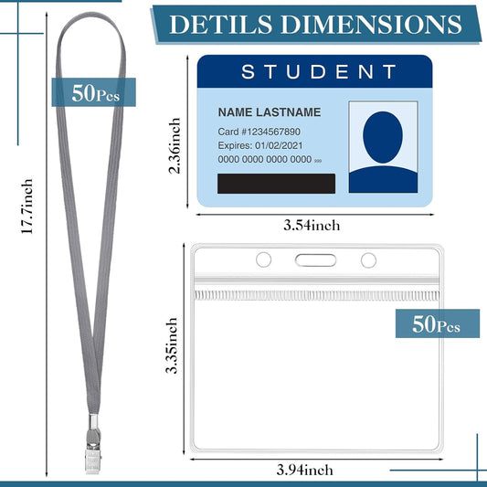 Bird Fiy Lanyards with id Holder Name Badges 50 Pcs Waterproof Type Clear Plastic Horizontal Name Tag Badge Id Card and 50 Pcs Lanyard (Gray)