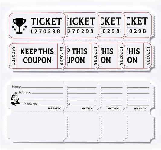 Methdic 2000 White Double Raffle Tickets Roll, Ticket for Events, Entry, Class Reward, Fundraiser & Prizes
