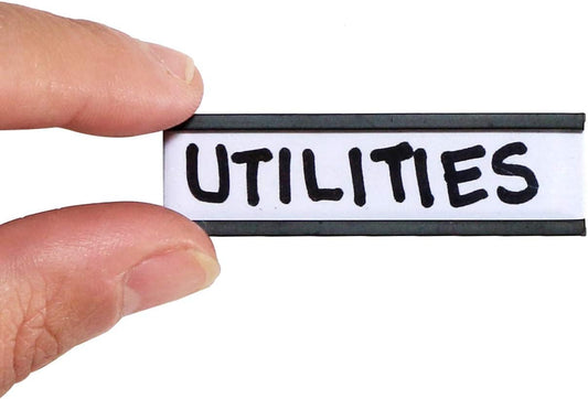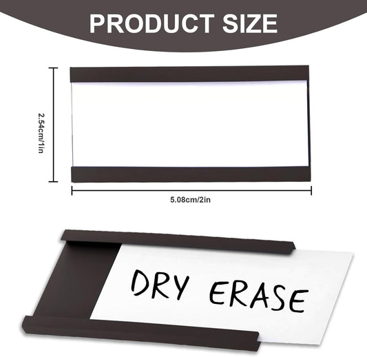 50 Pack Magnetic Label Holders, 'C' Channel Magnets Card Holders with Dry Erase Insert Label Card for Metal Racks and Shelves (1" x 2")