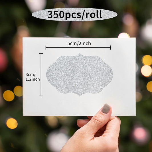 Silver Labels Stickers, 250 PCS 3" x 2" Fancy Shape Stickers Labels for Storage Box or Food Jars Holiday Present Stickers Christmas Gift Tags Stickers