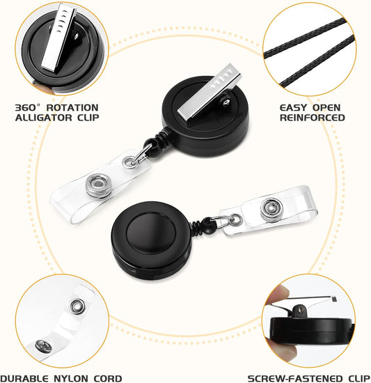25 Pack Badge Reels Retractable with Swivel Alligator Clip Retractable Badge Holder Reels for Students, Teachers, Office Workers (Black)