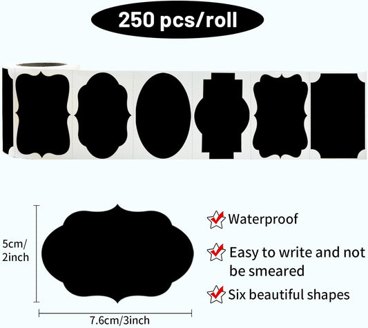 Black Labels Stickers, 250 PCS 3" x 2" Fancy Shape Sticker for Storage Box or Food Jars Holiday Present Christmas Gift Tags