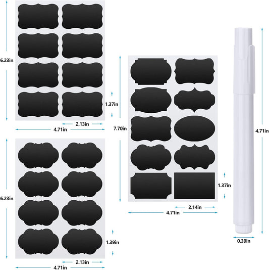 Chalkboard Labels - 180pcs Waterproof Reusable Blackboard Stickers with 2 Free Erasable White Chalk Marker, Mini Decorative Chalk Labels for Jars Containers Kitchen Home Pantry Office