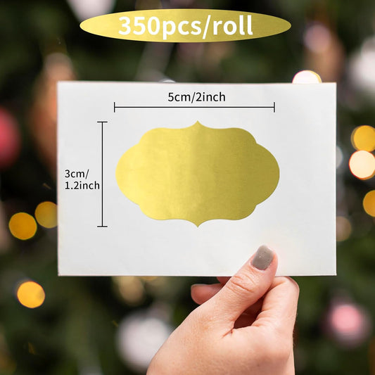 350 PCS Gift Tags Stickers Name Labels Stickers,2" x 1.2" Fancy Shape Stickers Self-Adhesive Handmade Bottle All-Purpose Jar Labels for Presents Cosmetic Decoration Jars Food Craft (Gold)