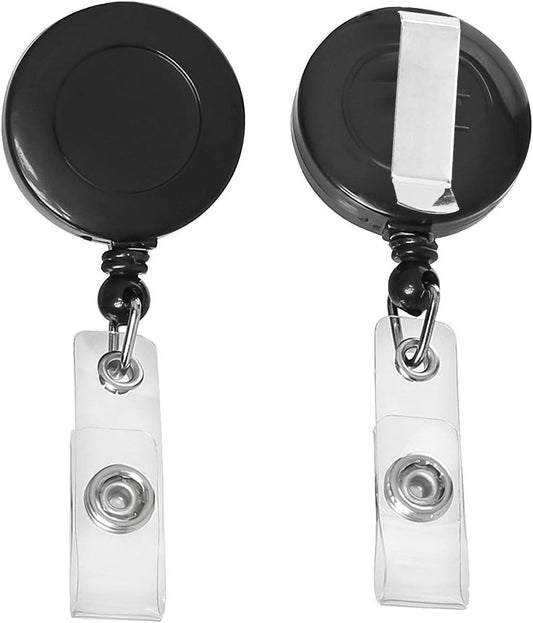 Laumoi Retractable ID Badge Holder Badge Reel with Belt Clip and Key Ring, Name ID Badge Clips Keychain for Office Worker Doctor Nurse Employee (Black,90)