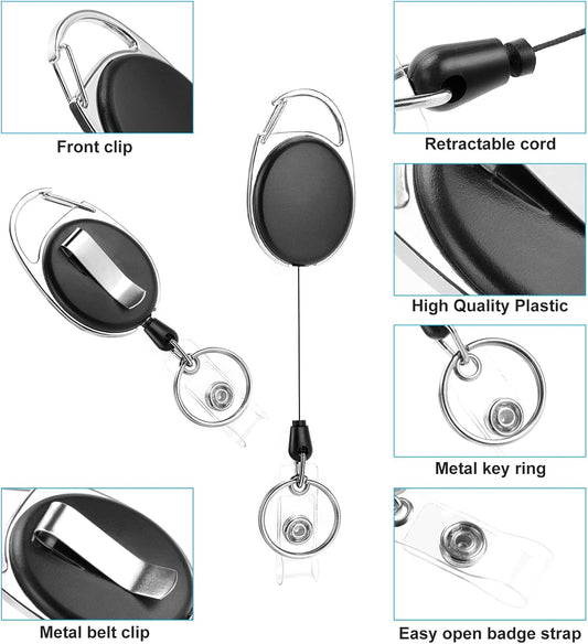 10 Pack Retractable Badge Reel with Carabiner Belt Clip and Key Ring Retractable ID Badge Holders for Office Worker Doctor Nurse
