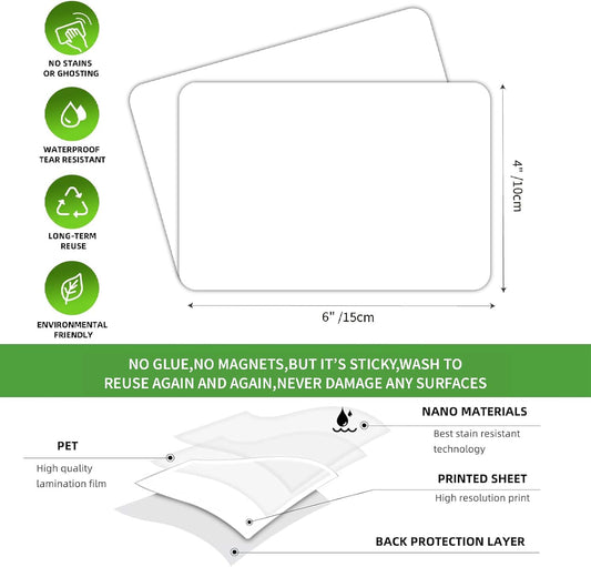 SVNOOC Multi-Use Label Stickers Dry Erase Sticky Notes, Labels for Storage Bin, Wall, Refrigerator, Home, Office, Classroom Use 4x6 inches (6 Pack)