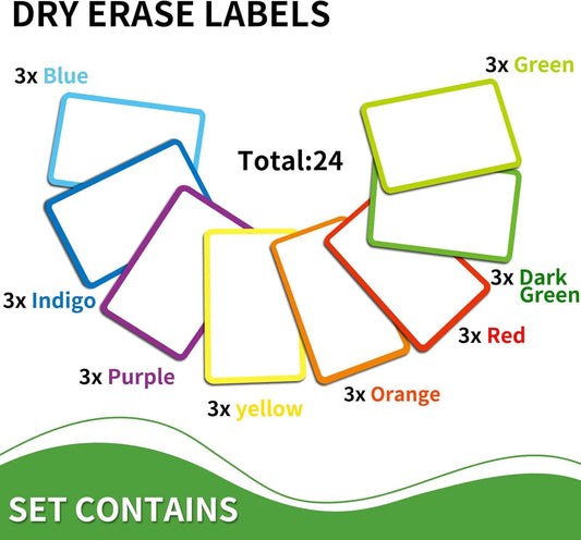 SVNOOC Removable Dry Erase Labels Reusable Sticky Notes 24pcs Name Tag Label Plate Rainbow Nano Sticker in 12 Colors for Whiteboards Locker Fridge School Office Home (2-x-4-inch)