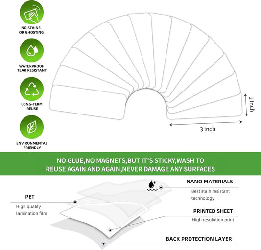 40-Pack Dry Erase Magnetic Labels - Waterproof, Eco-Friendly, Reusable Name Tags for Classroom, Office, Cabinet, Whiteboard, Fridge & More (White, 1x3 inches)…