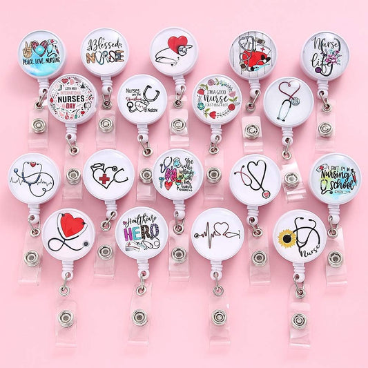 9 Pcs Cute Nurse Badge Reels Retractable Badge Holders with Alligator Clip ID Name Card Badge Clip for Office Student Doctor Nurse