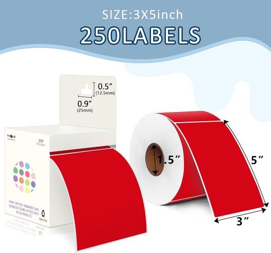 PARLAIM 3 X 5 Inch 250 Per Roll Rectangle Inventory Color Coding Labels,Roll Square Label Stickers for Home Red