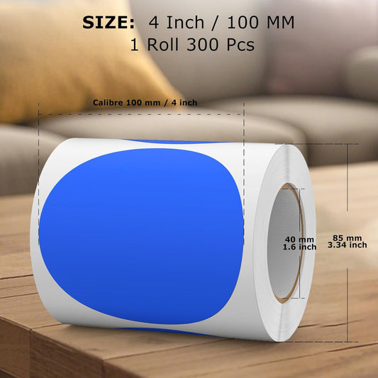300 PCS Round Stickers 4 Inch Blue Vinyl Circle Floor Dots Sticker Removable Self-Adhesive Colored Large Label Roll for Marking Inventory Organizing Classroom Line Up Spots