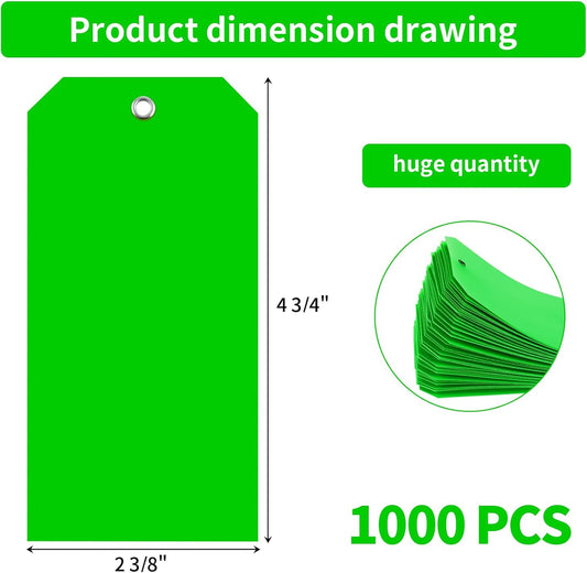 XUWAIDSGN 1000 Pieces 4 3/4" x 2 3/8" Green Plastic Shipping Tags, Waterproof, Writable, Reinforced Hole, Luggage Tags for Equipment, Car Parts