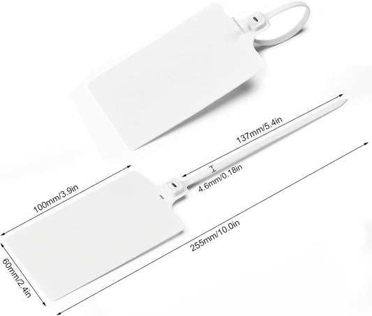 50 White Plastic Writable Shipping Tags - Large, Waterproof, Hanging Labels with One Permanent Marker Pen