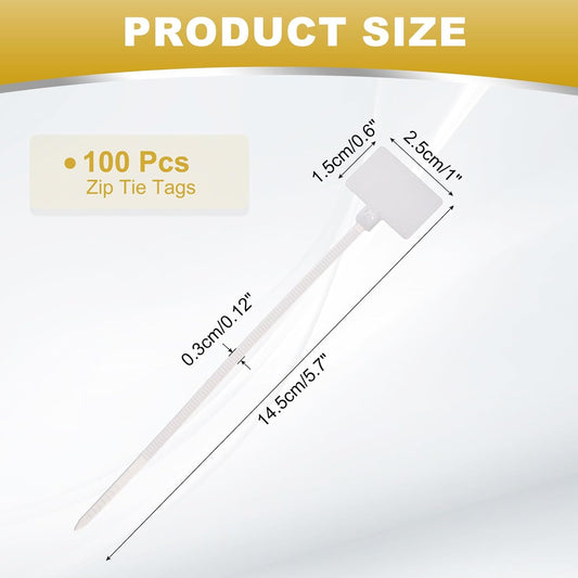 uxcell 100 Pcs Cable Label Marker Tags, Nylon Cable Zip Tie Tags 6.3 Inch Writable Self-Locking Wire Labels Zip Ties for Organization Marking, White