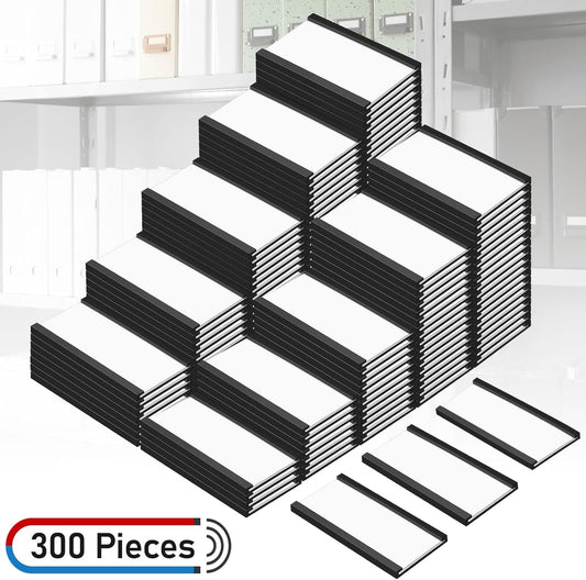 300 Pieces Magnetic Label Holders Channel Labels Racks Magnetic Card Holders with Protective Films and Replacement Strips for Metal Shelf, Filing Cabinet, Mailbox, Whiteboard (1 x 2 Inch)