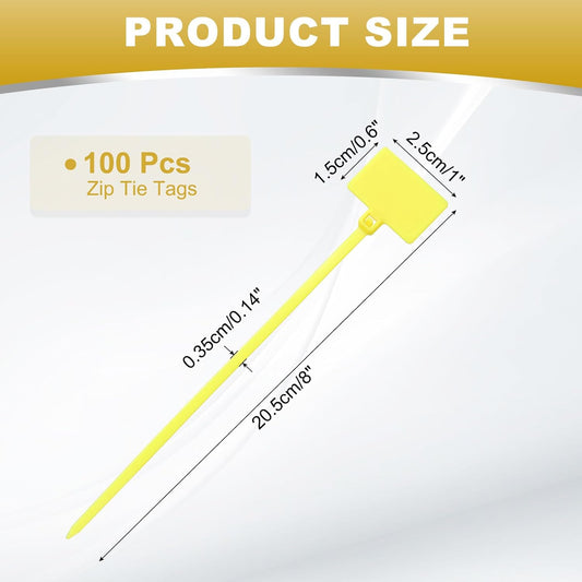 uxcell 100 Pcs Cable Label Marker Tags, Nylon Cable Zip Tie Tags 8.7 Inch Writable Self-Locking Wire Labels Zip Ties for Organization Marking, Yellow