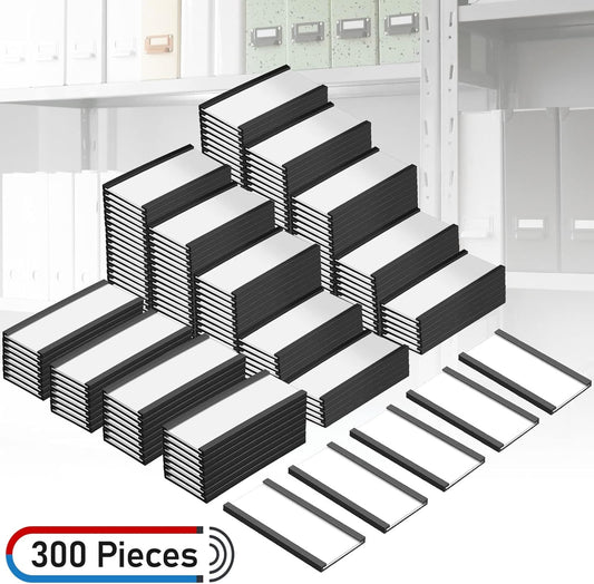 300 Pieces Magnetic Label Holders Channel Labels Racks Magnetic Card Holders with Protective Films and Replacement Strips for Metal Shelf, Filing Cabinet, Mailbox, Whiteboard (1 x 3 Inch)