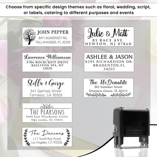 Custom Address Stamps Self Inking or Wood Handle 20+ Designs to Choose from! Return Address Stamp Stamper Self Inking Personalized Customized Stamp Return Address Floral Wedding Script Labels Mail
