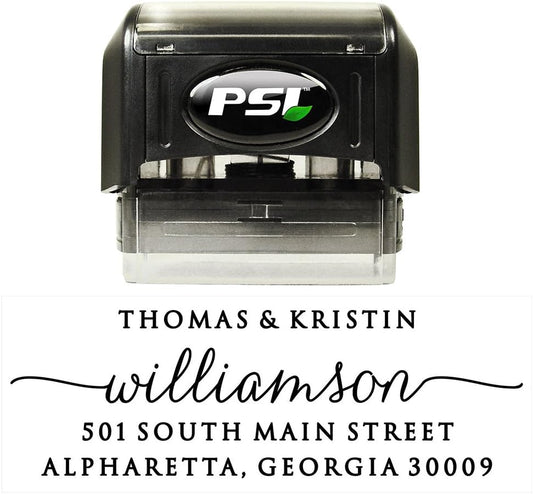 Self Inking Return Address Stamp - Custom 4 Line Personalized Address Stamp for Envelopes, Wedding Invitations, Business, Mailing Labels, Black Ink (Calligraphy Script)